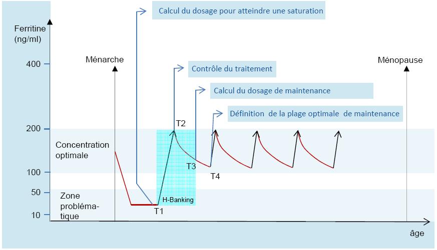 Après avoir considéré les symptômes et les résultats de laboratoire (Hémoglobine, Ferritine, Transferrine et récepteurs solubles de Transferrine) le médecin calculera vos besoins en fer personnels. Il vous en informera et discutera avec vous du traitement choisi en cas de manque ; tout en considérant le succès présomptif, les risques et les frais du traitement. Sans oublier : un traitement par voie orale nécessite aussi un suivi du patient.